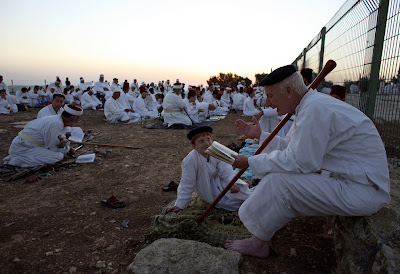 Membros da comunidade samaritana participam da peregrinação tradicional que marca o feriado de Sucot. |