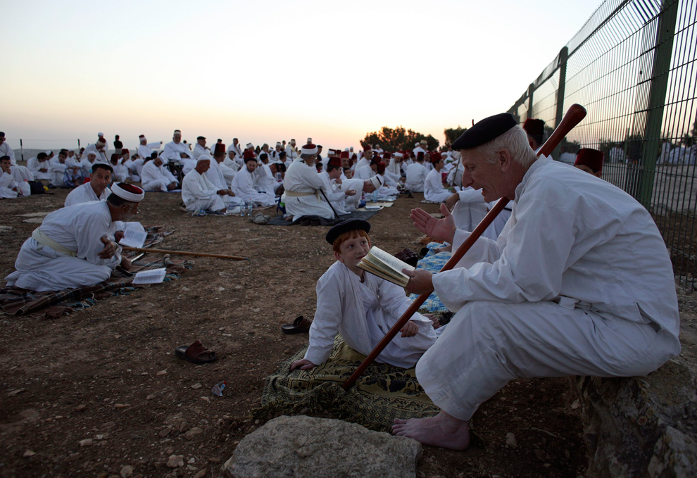 Membros da comunidade samaritana participam da peregrinação tradicional que marca o feriado de Sucot. |